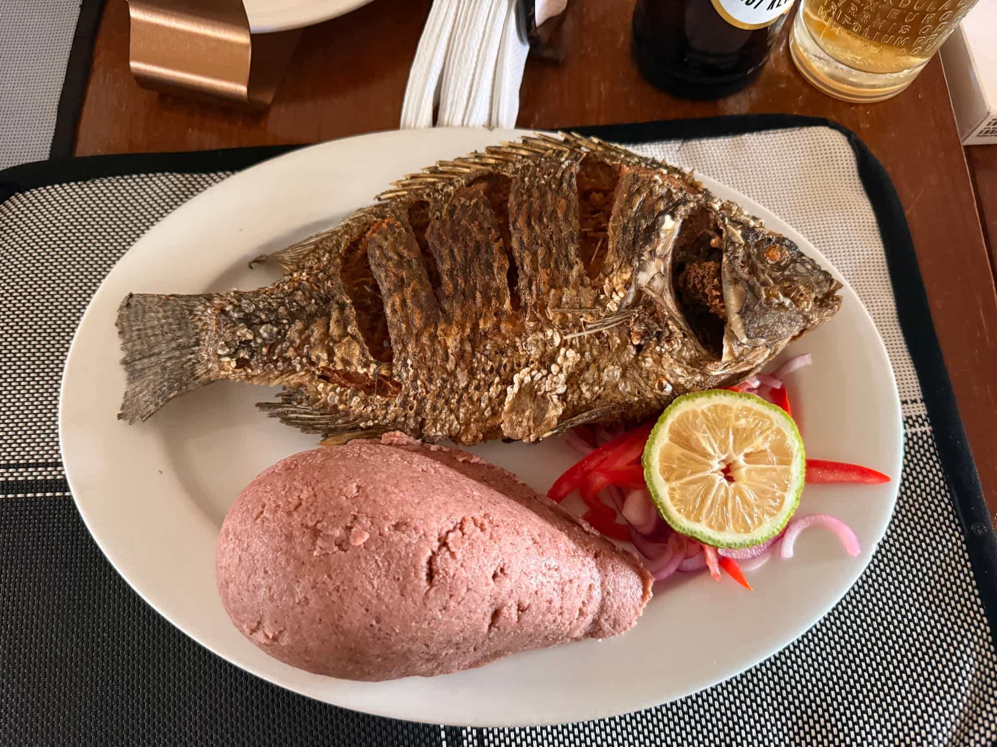 In the Homa Bay region, I ate a lot of tilapia, often with my hands. For a stretch I had it for dinner every day. Ugali came with every dinner: mostly white ugali made from corn, and once a brown ugali made from millet. I loved it. I’m determined to try making it at home.